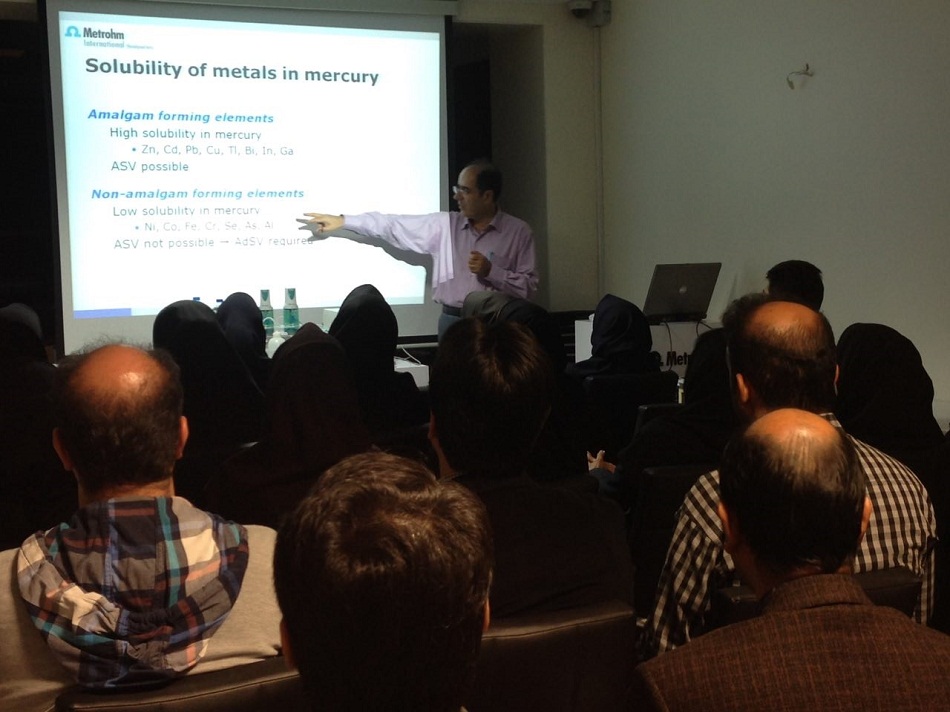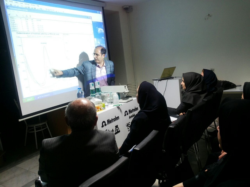 کارگاه آموزشی و عملی ولتامتری / پلاروگرافی شرکت سنجش و آنالیز نوین ابتکار در راستای ارتقاء دانش کاربران دستگاه های پلاروگراف و معرفی کیت جدید اندازه گیری آرسنیک و جیوه ( scTRACE Gold sensor ) در تاریخ 28/07/94 در محل شرکت نوین ابتکار با حضور چشمگیر کارشناسان و کاربران دستگاه از سراسر کشور برگزار گردید که در این کارگاه علاوه بر توضیح نکات مهم و ضروری در کار با پلاروگراف و پاسخ به سوالات و مشکلات کاربردی آنها اندازه گیری آرسنیک با کیت جدید نیز به معرض نمایش گذاشته شد و شرکت کنندگان ضمن آشنایی با جدیدترین محصول پلاروگراف 884 VA professional با توانایی های آن نیز آشنا شدند.